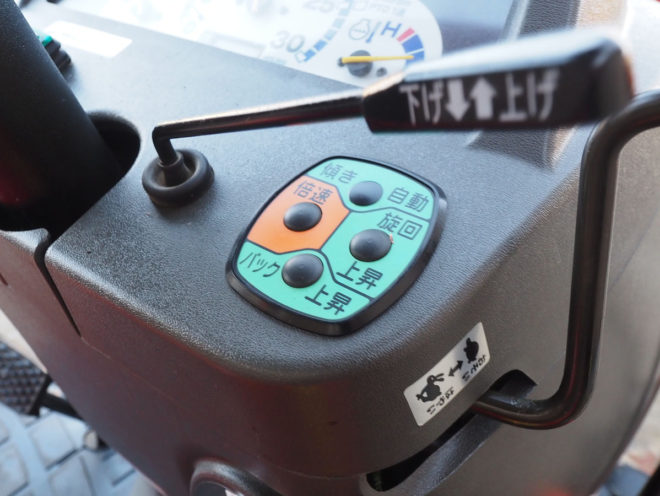 装備:パワステ、キャノピー(屋根)、自動水平、旋回UP、バックUP。