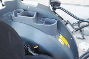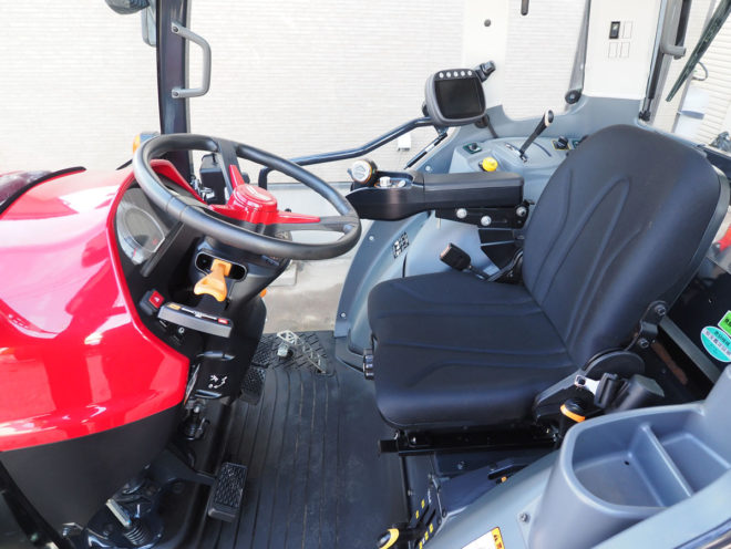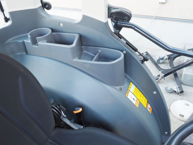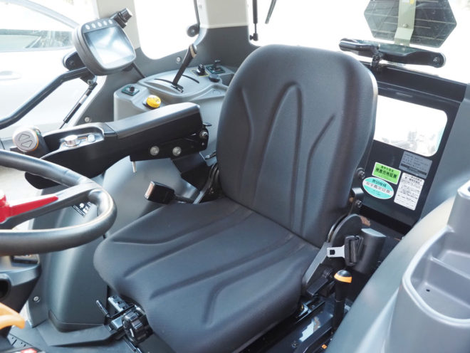 キャビン内も防振フレームやフルラウンドキャビン、フルフラットデッキ、サスペンションシート、エアコンもしっかり冷え、暑い寒い雨など天候に左右されない快適な環境で作業が行えます。